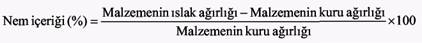 Formülden anlaşılacağı üzere bünyesinde aynı miktar su bulunduran ağır bir malzemenin yüzde olarak nem içeriği hafif bir malzemeden daha büyük olacaktır. Bu nedenle her bir malzemenin aşın nemli sayılacağı nem içeriği değerleri birbirinden farklıdır. %4 nem içeriğine sahip ahşap kuru sayılırken bazı harçlar ve tuğlalar aşırı nemli, sıva ise ıslak sayılmaktadır.