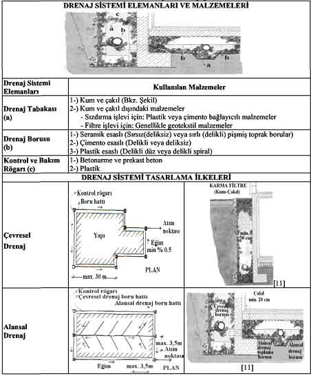 Alansal drenaj sistemi ise, zemine oturan döşemelerin altında, zemin suyunun birikip hidrostatik basınç uygulamasını önlemek amacıyla oluşturulur (Tablo 2).
