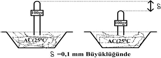 Penetrasyon deneyi bitümlü malzemenin belirli koşullardaki sertliğini (kıvamını) saptar. Deney bulguları asfalt çimentolarını sınıflandırır. Bu deney Şekilde görüldüğü gibi standart iğnenin, belirli yük, zaman fore kazık - jet groutlu bir iksa uygulaması ve ısıda, bitümlü malzeme içine batma miktarının ölçülmesi ile yapılır. Bu deneyde kullanılan standart yük 100 gr. Zaman 5 sn. ve sıcaklık derecesi 25 santigrad derecedir.