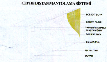 Yukarda değinilen yalıtım sistemlerine ait, birer örnek detay aşağıda görülebilir (Cephe Dıştan Mantolama Sistemi, Isı Yalıtımlı Dıştan Bohçalama, Gezilebilir Betonarme Teras Çatı).