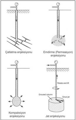 Zemin içerisine yerleştirilmesine göre temel enjeksiyon teknikleri Şekil 1 'de gösterilmiştir.